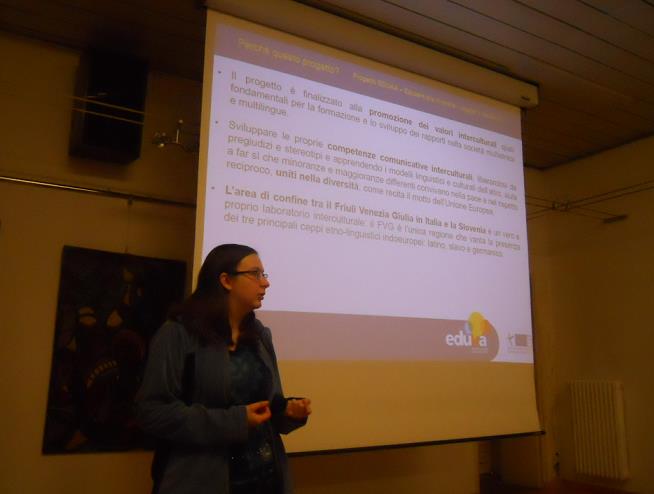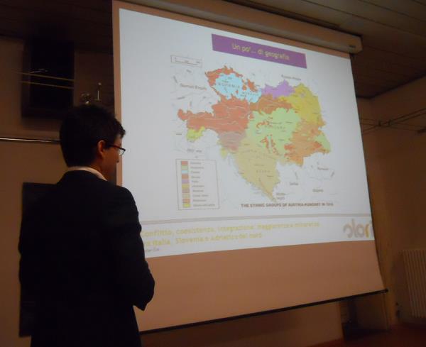 V petek, 28. marca 2014, se je odvijalo predavanje o zgodovinskih in jezikovnih manjšinah v sklopu obiska dijakov dveh razredov znanstvenega liceja “G. Gandini-P. Verri” iz Lodija, ki so prišli na obisk v Trst. Predavala sta sodelavca SLORIja, koordinatorka WP4 Marianna Kosic in Štefan Čok. Na slikah med predstavitvijo.