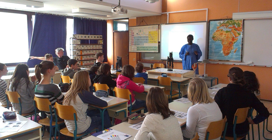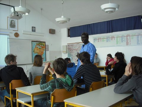 V četrtek, 4. 4. 2013, smo izvedli na Osnovni šoli Dušana Bordona v Kopru, kjer sta nas prijazno sprejeli ravnateljica Vesna Lavriša in učiteljica Svetlana Tratnik, prvi dve osnovnošolski delavnici Eduka. Marijanca Ajša Vižintin in Klara Kožar Rosulnik (Inštitut za slovensko izseljenstvo in migracije ZRC SAZU) ter gost Ibrahim Nouhoum so učencem in učenkam 8. a in 8. b predstavili projekt Eduka. Ibrahim Nouhoum je opisal predkolonialno Afriko z afriškimi kraljestvi (Gana, Mali idr.), svojo prvotno domovino Mali ter svoje izkušnje vključevanja v Slovenijo oz. v Jugoslavijo, kamor je prišel kot študent gozdarstva leta 1978. Učenke in učenci so bili nad njim in njegovo predstavitvijo navdušeni ter veseli, ker so izvedeli toliko novih informacij. Eden od učencev je zapisal: »Tak pouk bi imel vedno.« Na slikah: predavatelji in učenci.