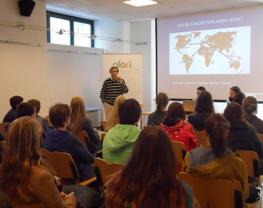 V četrtek, 3. oktobra 2013, se je odvijalo predavanje o zgodovinskih in jezikovnih manjšinah v sklopu obiska dijakov gimnazije Ledina iz Ljubljane, ki so prišli na obisk v Trst. Predavali so: koordinatorka WP4 Marianna Kosic (SLORI), Roberto Bonifacio (Italijanska Unija) in Feliciano Medeot (Società Filologica Friulana). Na slikah med predstavitvijo.